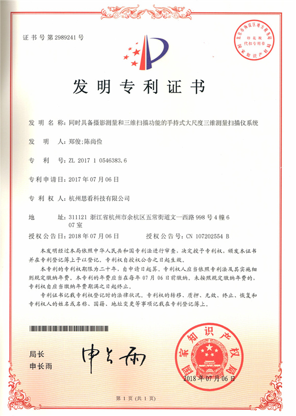 當(dāng)前位置:網(wǎng)站首頁(yè) > 關(guān)于思看 > 企業(yè)資質(zhì) > 同時(shí)具備攝影測(cè)量和三維掃描功能的手持式大尺度三維測(cè)量掃描儀系統(tǒng)-發(fā)明專
